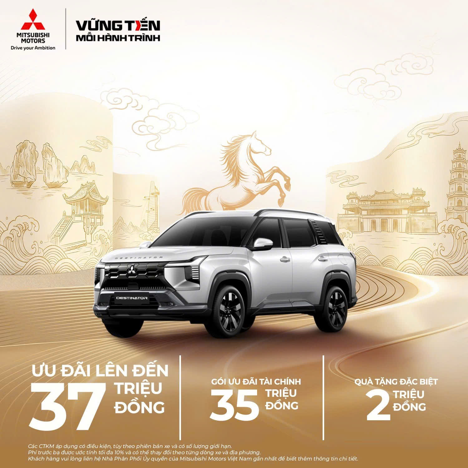 - Hỗ trợ tài chính trị giá 35 triệu đồng và quà tặng đặc biệt cho Mitsubishi Destinator